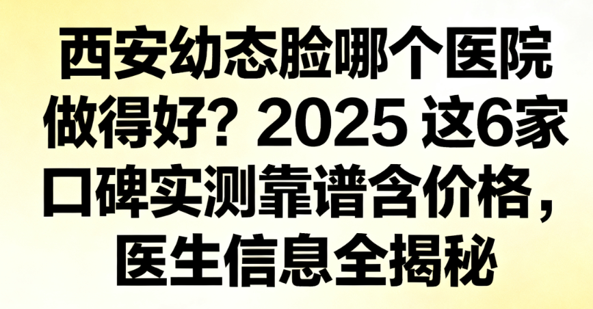 随着医美技术的不断发展,“幼态脸”已成为当下较受欢迎的微整形项目之一。www.8682.cc在西安,想要打造自然减龄的幼态脸疗效,选择一家技术可靠、医生经验比较丰富的医院至关重要。经过实地考察和用户反馈,为您精选出2025年西安地区6家口碑与实力兼备的幼态脸注射医院,包含价格区间和医生信息,助您可靠变好看。