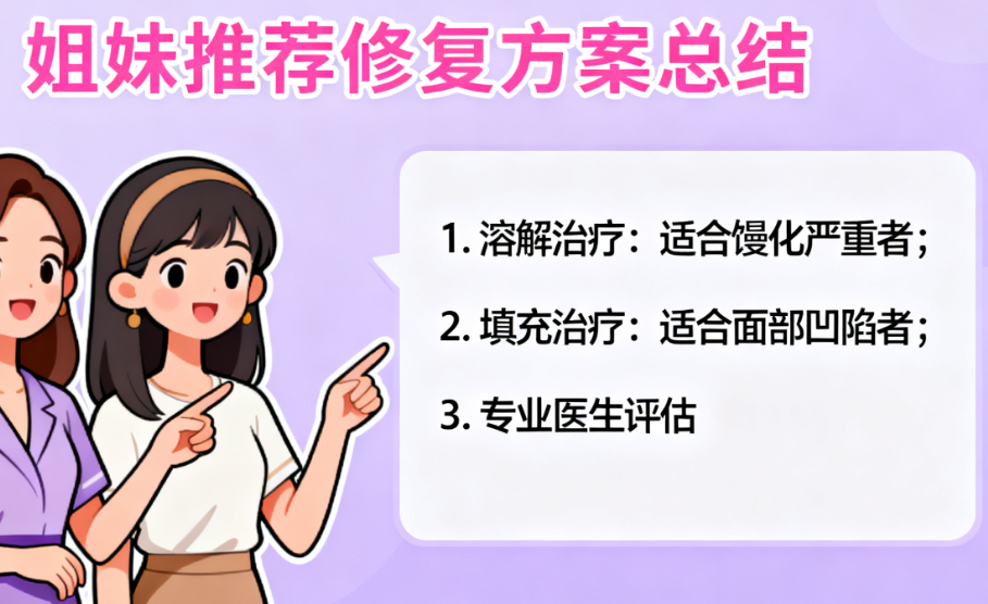 从满意度调查看,填充修复的长期满意度(12个月后)达85%,高于溶解修复的65%。但后者在紧急改善方面的优势不能代替。关键是根据专门评估选择合适方案,而非盲目追求成效或持久。